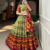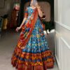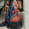 Indulge in the rich heritage of authentic Tussar silk, adorned with exquisite Patola prints and shimmering foil details. This lehenga choli set is a celebration of traditional craftsmanship, designed to make you the center of attention at weddings, festivals, and grand celebrations.
